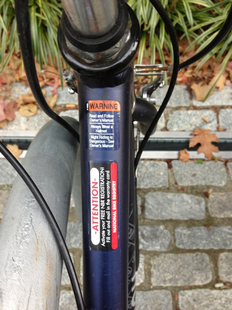 The Schwinn’s says DO NOT RIDE AT NIGHT whereas the Raleigh’s is more generous with Night Riding is Dangerous – See Owner’s Manual, where I can only assume it tells you not to ride at night.