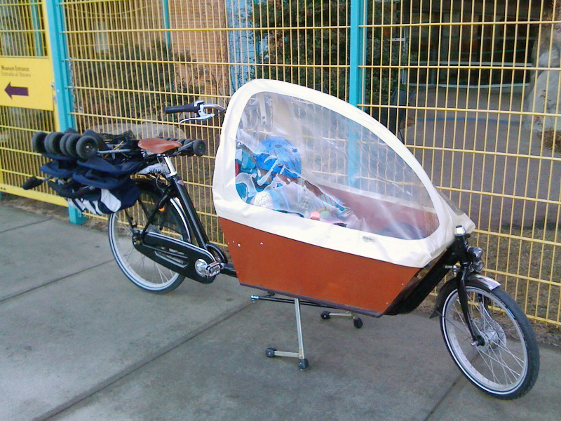 Tags: bakfiets, bicycle, bike, bungee, rack, stroller